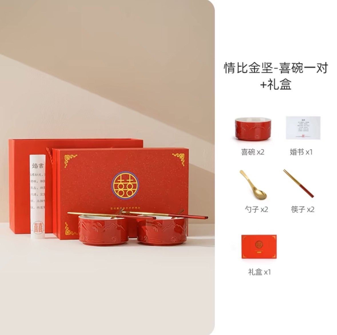 【良辰囍品】情比金堅-红色喜慶订婚喜碗x一對+婚書+禮盒